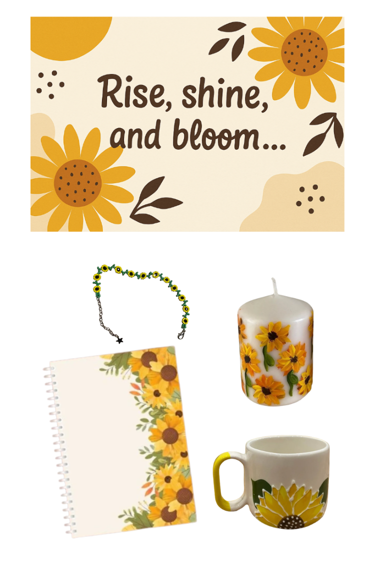 • Motto Kartı: “Rise, shine and bloom…” yazılı, ayçiçeği temalı pozitif enerji kartı.