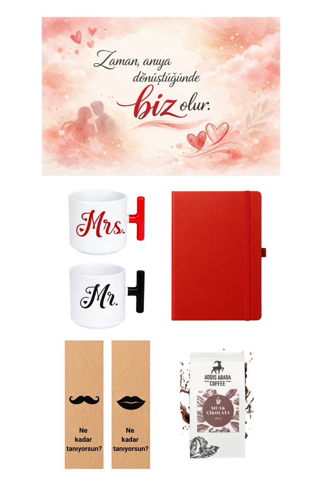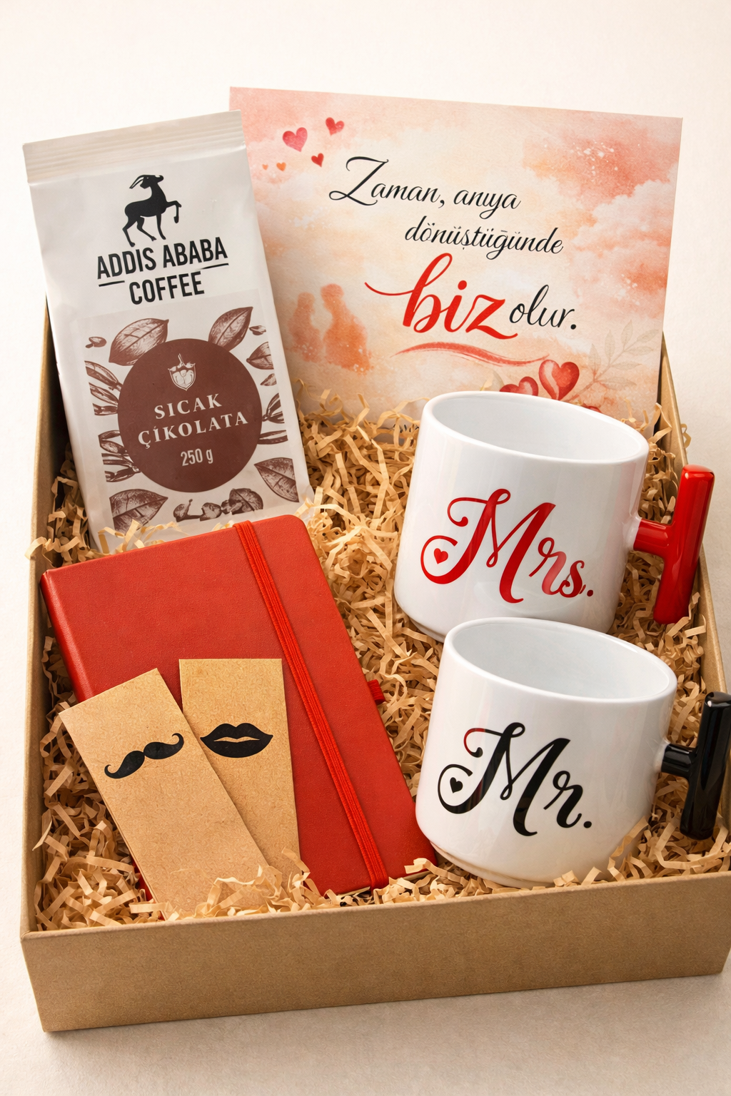 ☕️ 2 Adet Porselen Kupa: Mr. ve Mrs. tasarımlı, günlük kullanıma uygun porselen kupalar.