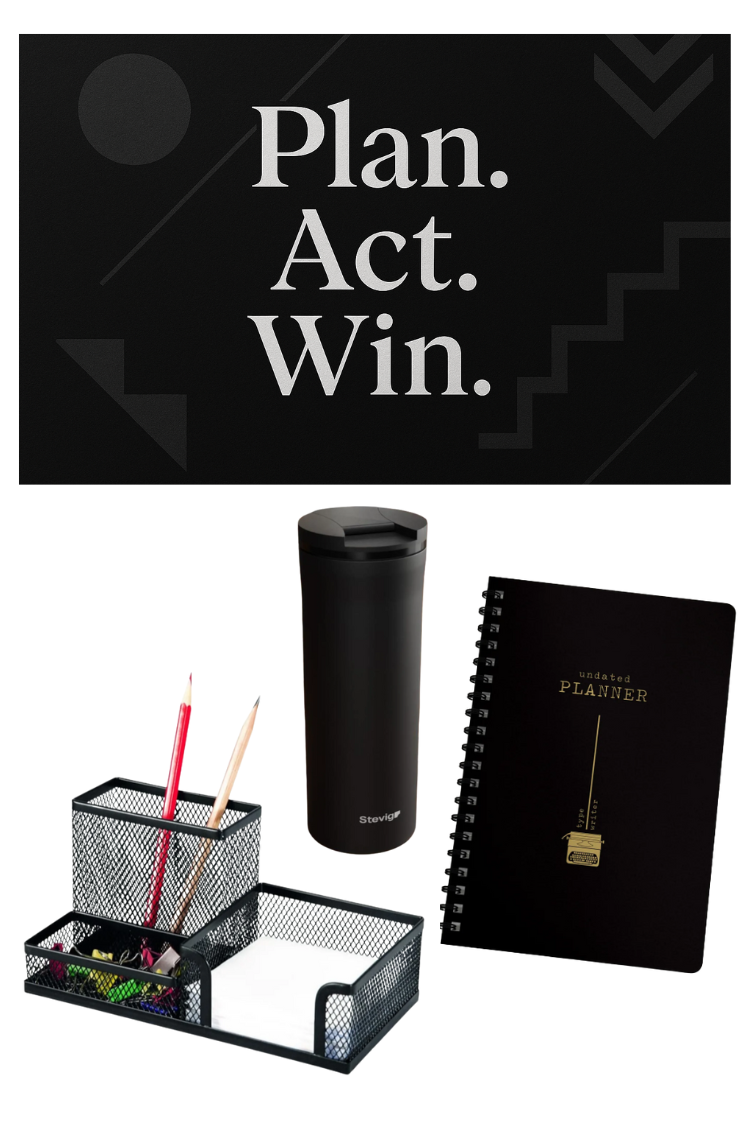 • Motto Kartı: “Plan. Act. Win.” mesajıyla motivasyonu hep yüksek tutacak kart.