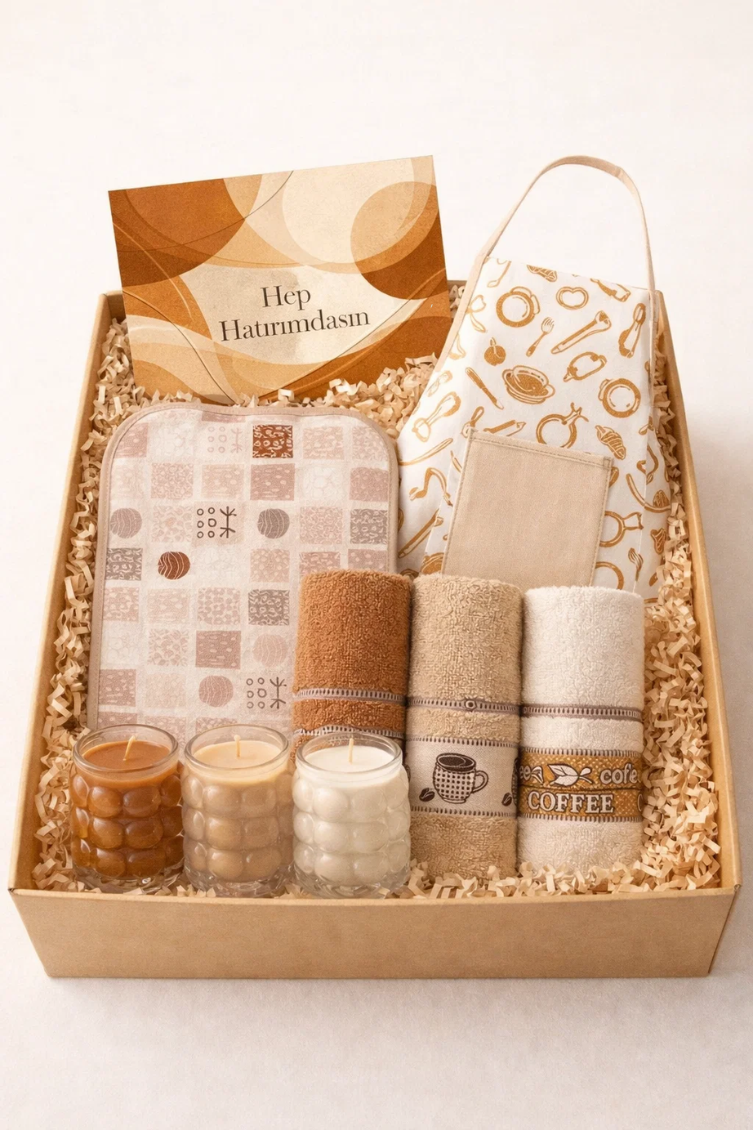 Günün en sakin anlarında, kahve eşliğinde geçirilen o huzurlu dakikalara eşlik edecek bu kutu; sıcacık tonları, yumuşak dokuları ve kullanışlı parçalarıyla ona hem konfor hem de keyif sunar. Sen hiçbir şeyle uğraşmadan, hazır ve özenle hazırlanmış bu kutuyla onun gününe küçük ama unutulmaz bir sıcaklık katabilirsin.