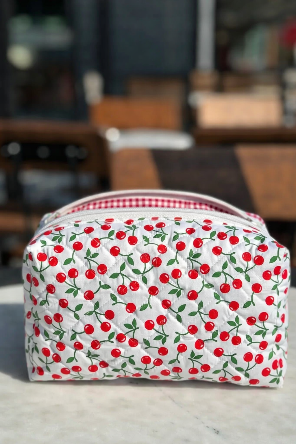 Kiraz desenleriyle tasarlanan bu pamuk makyaj çantası, günlük kullanım için hem pratik hem de şık bir seçenektir. Fermuarlı yapısı sayesinde makyaj malzemeleri, küçük bakım ürünleri veya kişisel eşyalarınızı düzenli şekilde taşımanıza yardımcı olur. Seyahatlerde ve günlük kullanımda çanta içinde düzen sağlamak için idealdir.