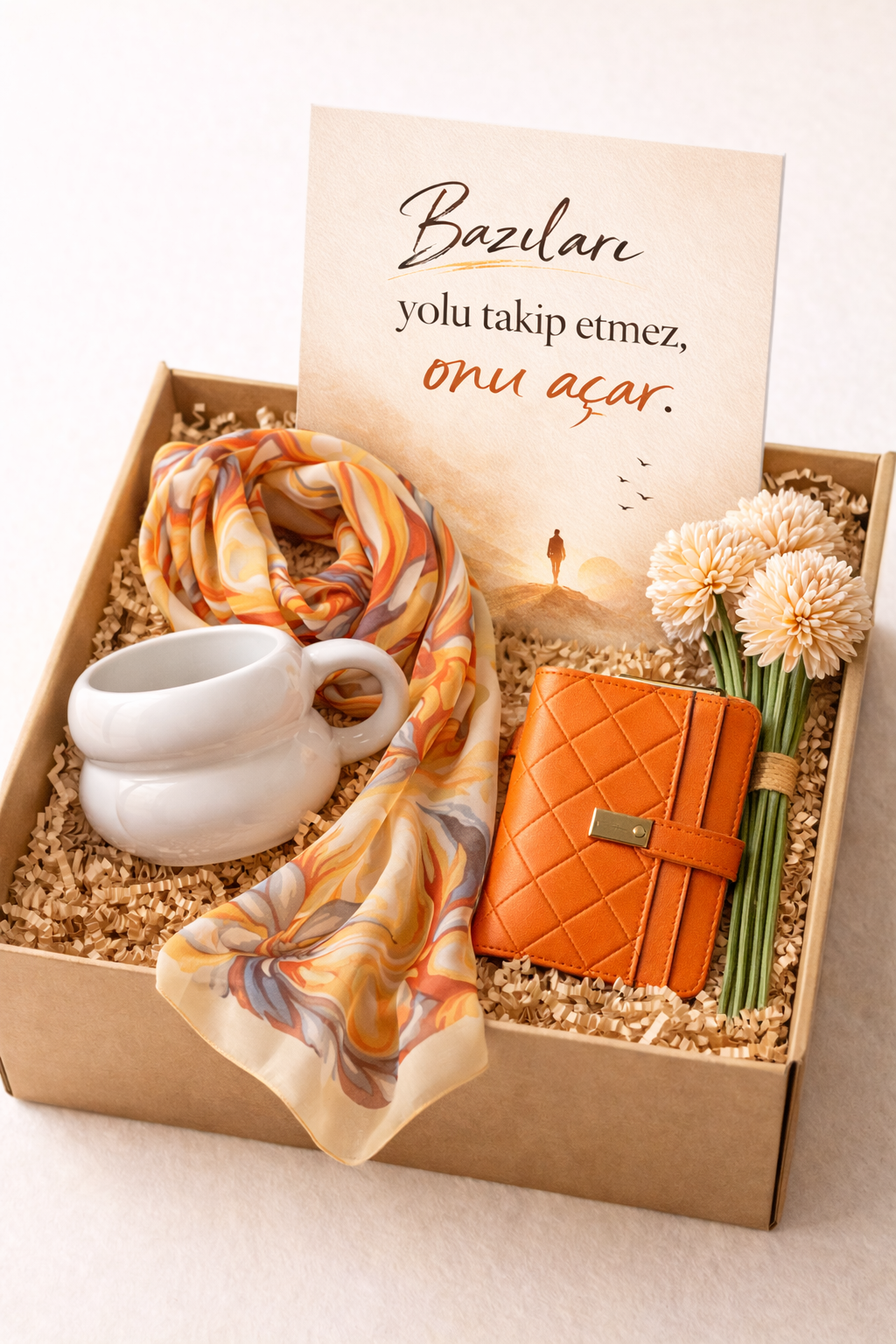 Kutunun enerjisini yumuşatan krem tonlarında zarif bir dekoratif dokunuş.