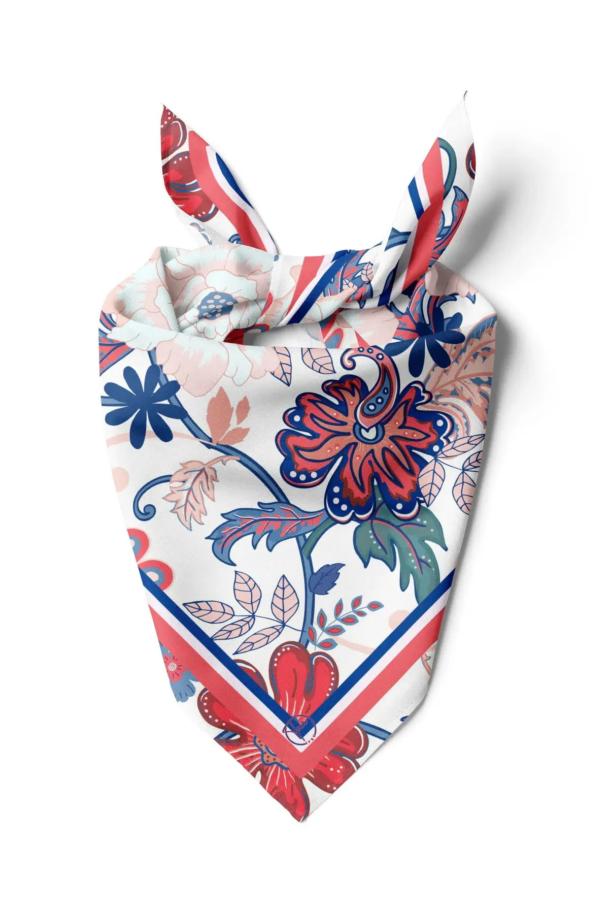 Mercan, lacivert ve pudra tonlarındaki çiçek desenleriyle kombinlerinize canlı ve zarif bir hava katar. Günlük kullanıma ve özel davet stiline kolayca uyum sağlar. Boyunda, çantada veya saç aksesuarı olarak rahatlıkla kullanılabilir.