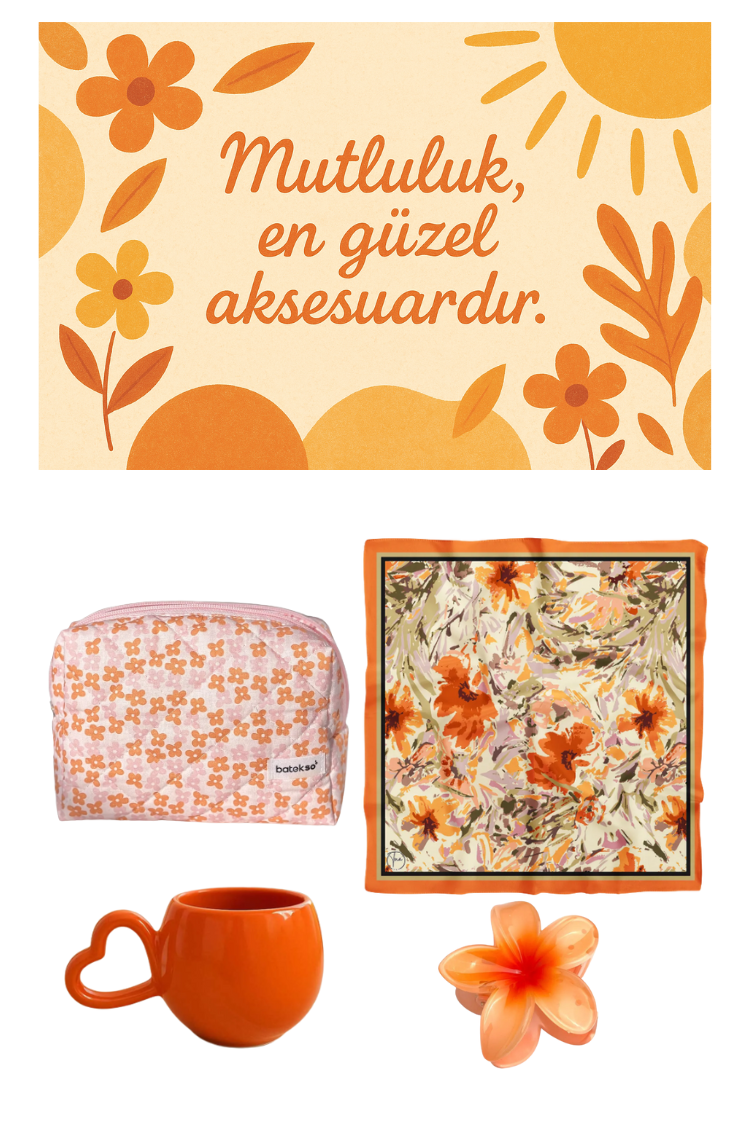 • Çiçek Desenli Kumaş Çanta: Günlük kullanım için ideal, turuncu çiçek desenleriyle enerjik bir aksesuar.