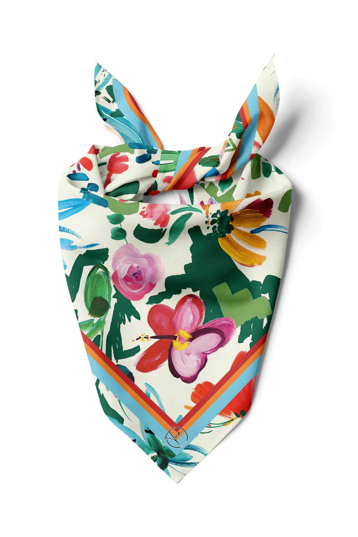 Canlı ve enerjik çiçek desenleriyle dikkat çeken bu fular, kombinlerinize renkli bir dokunuş katar. Günlük kullanıma uygun olduğu gibi özel kombinlerde de stilinizi tamamlar. Boyunda, çantada veya saç aksesuarı olarak rahatlıkla kullanılabilir.