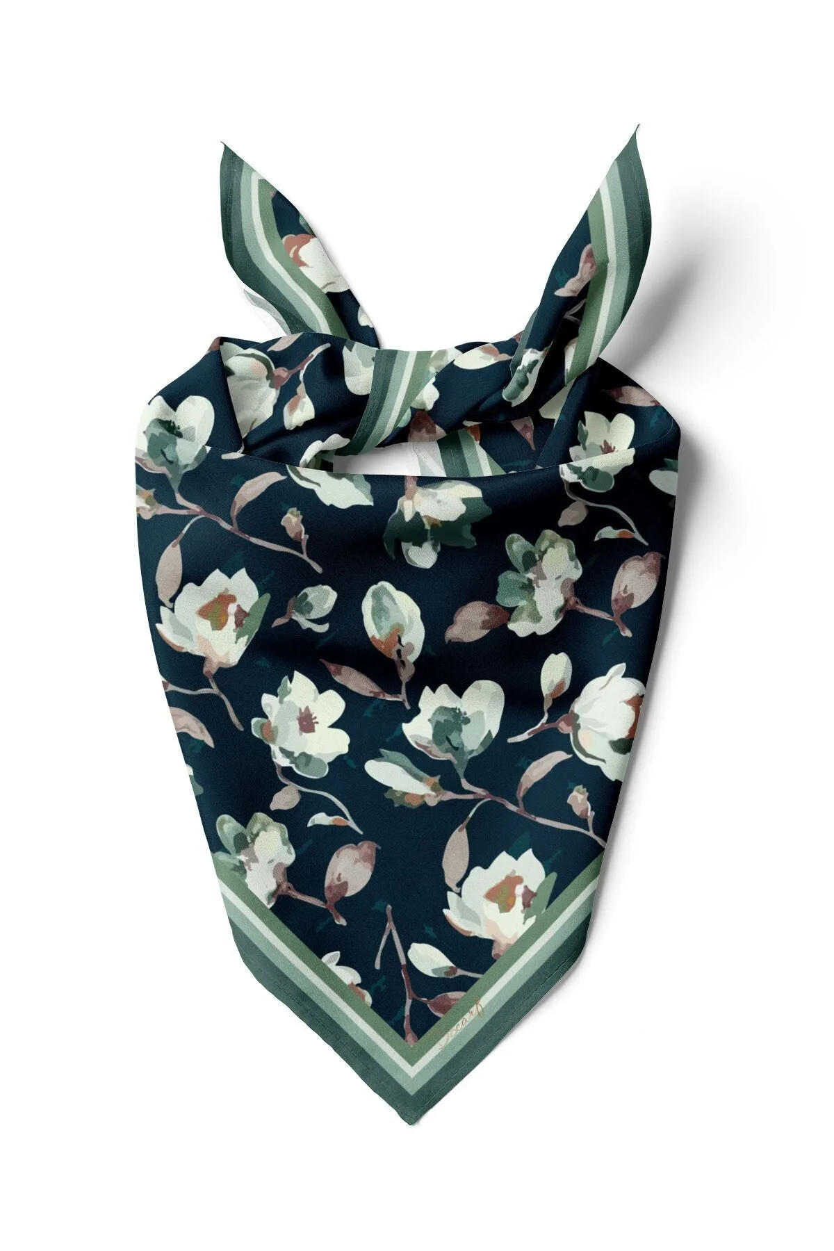 Koyu zemin üzerine soft tonlu çiçek desenleriyle zamansız ve şık bir görünüm sunar. Günlük kombinlerde, ofis stilinde veya özel davetlerde rahatlıkla kullanılabilir. Boyunda, çantada ya da saç aksesuarı olarak farklı stillerle uyum sağlar.