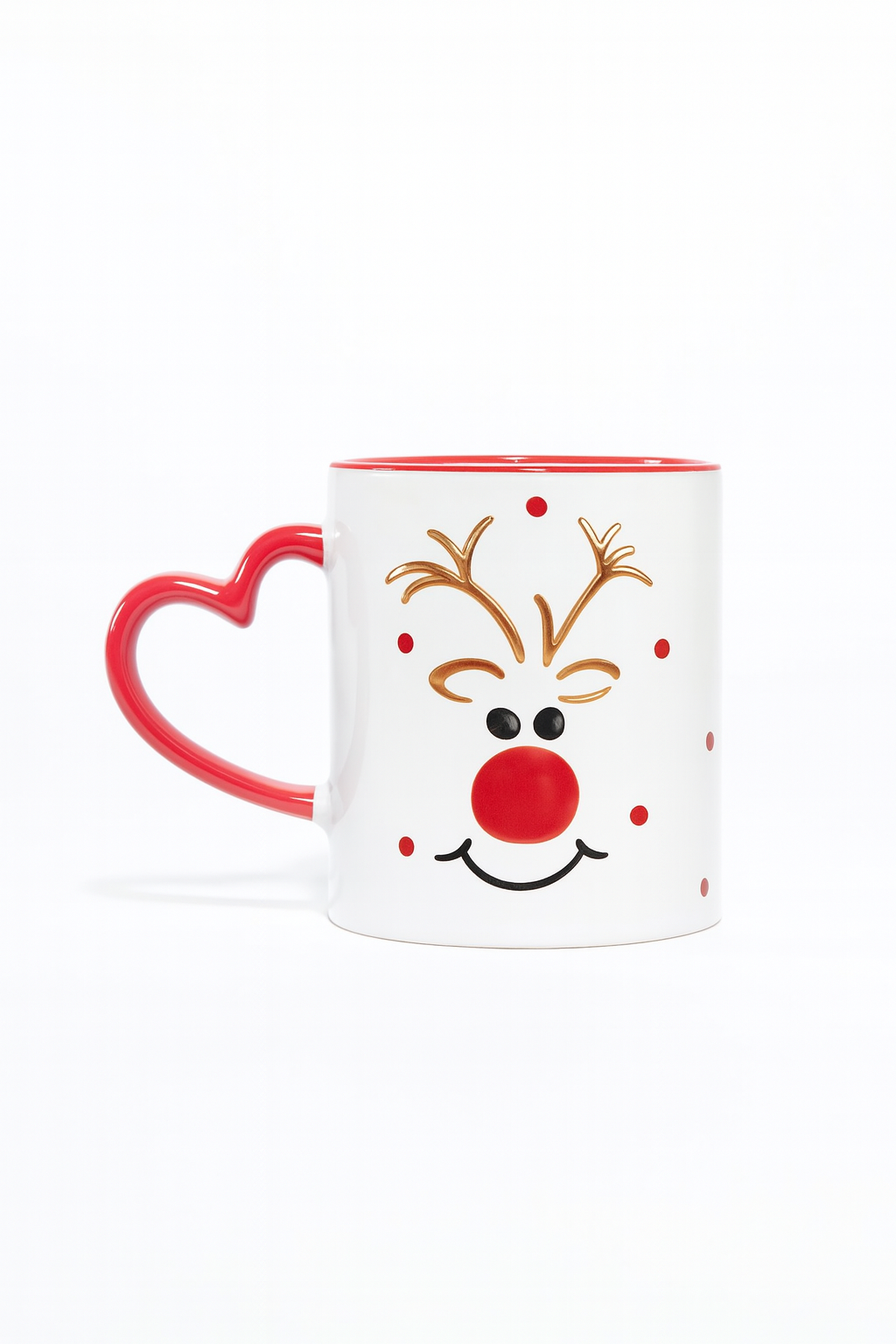 Yılbaşı temalı sevimli geyik tasarımıyla öne çıkan bu kupa , kalp şeklindeki kırmızı kulbu ve neşeli yüz detayıyla sıcak bir kullanım sunar. Günlük kahve ve çay keyfi için uygundur; yılbaşı hediyesi veya hediye kutuları için şık ve eğlenceli bir tamamlayıcıdır.